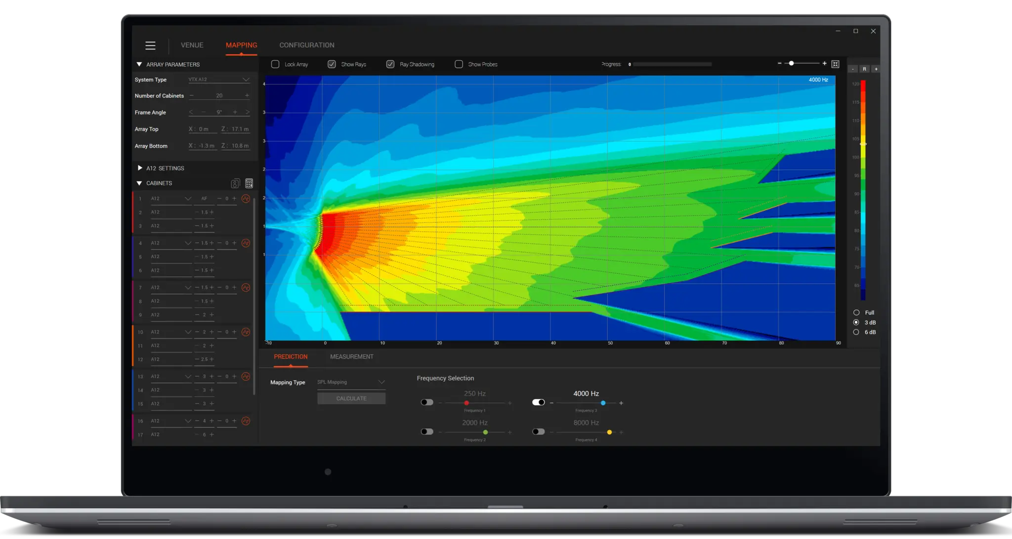 어레이가 길수록 더 낮은 주파수까지 빔폭을 좁힙니다. 관객석 앞·뒤 레벨 균일도 역시 높이가 결정합니다. “저천장=짧은 H” 공간은 과감히 포인트 소스분산 스피커가 나을 때도 있습니다.