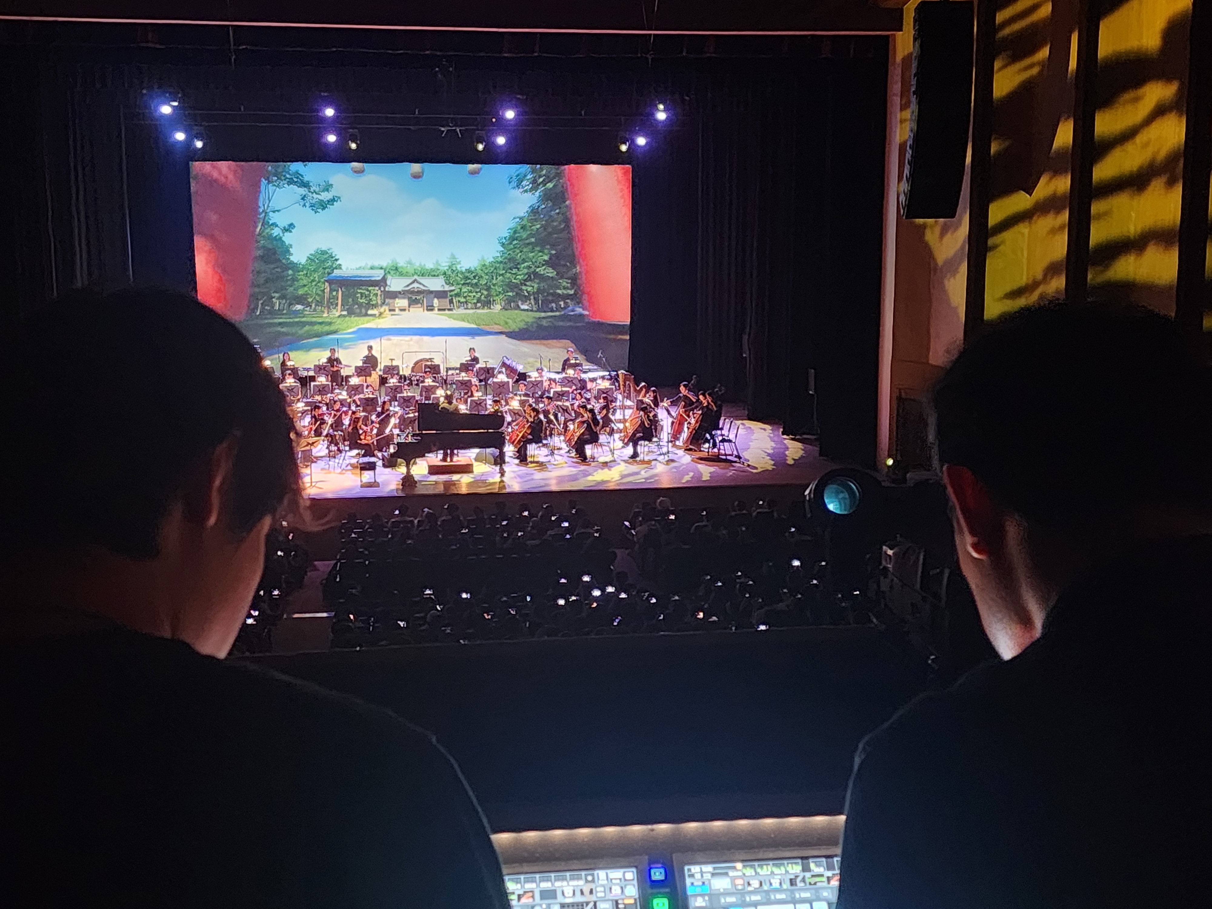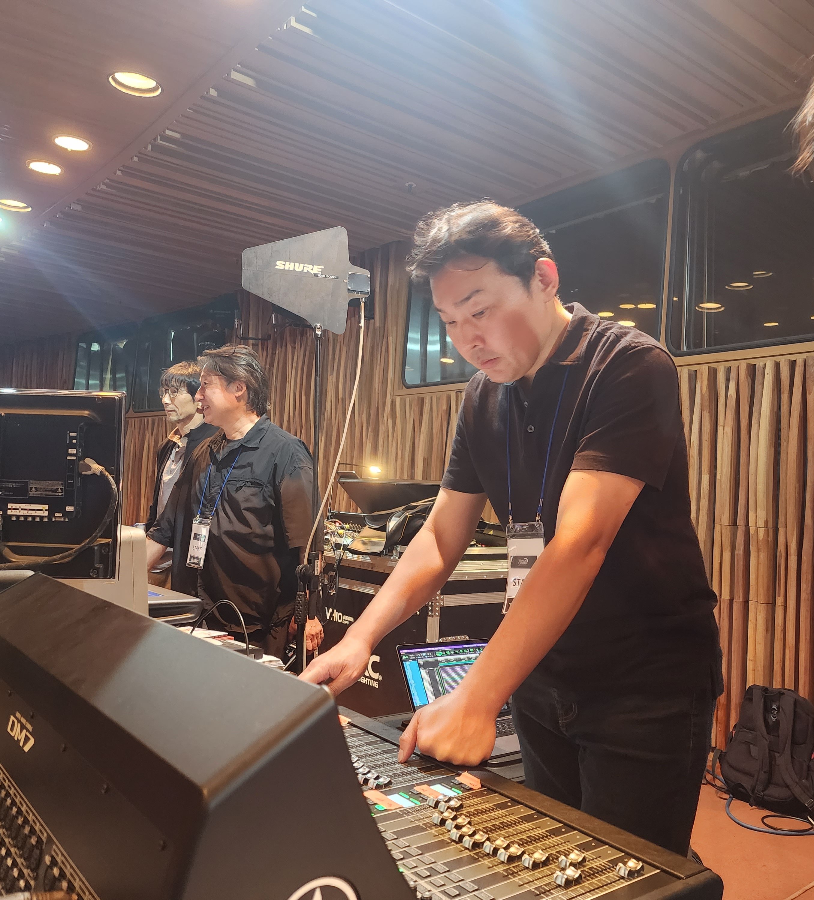 FOH 시스템은 Yamaha DM7을 메인으로, Yamaha DM7C를 보조 믹싱에 활용했습니다. 70인조 오케스트라, 피아노 솔로이스트, 그리고 무대 전면에 설치된 대형 LED 스크린까지—모든 요소가 하나의 경험으로 통합되어야 했습니다.